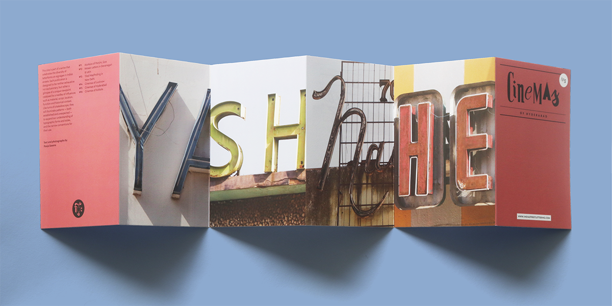 Based on the visual record of public signage in the country that is housed under India Street Lettering, the theme of each zine is catalysed by a medley of influences such as material, script, location, function and historical context. Since 2023, two batches have been published: the first focused on the use of tiles in street lettering, and the second features cinema signs from Lucknow, Hyderabad and Kolkata.
